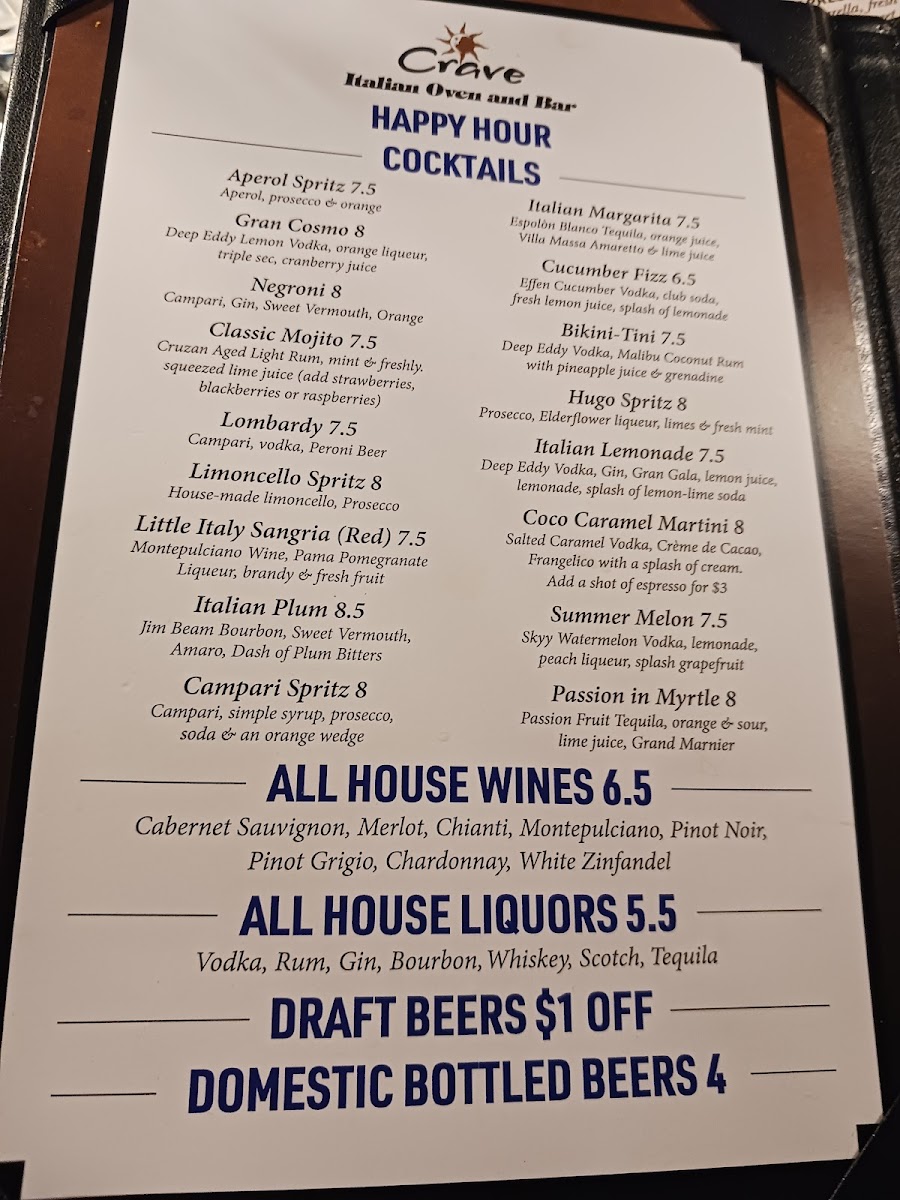 Welcome to Crave Italian Oven & Bar Myrtle Beach, where the rich flavors of Italy come alive in a warm, inviting atmosphere. Nestled at 7401 N Kings Hwy, this restaurant is a culinary haven for those seeking authentic Italian cuisine.